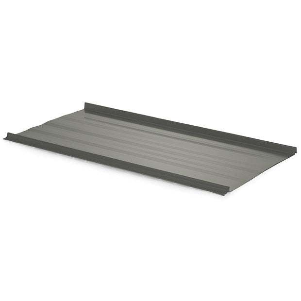Features a 16-inch coverage width and a 1-inch seam height, designed with an integrated fastening flange that allows for easy installation without clips. This profile offers a clean, contemporary look with concealed fasteners, making it ideal for residential and light commercial roofing applications